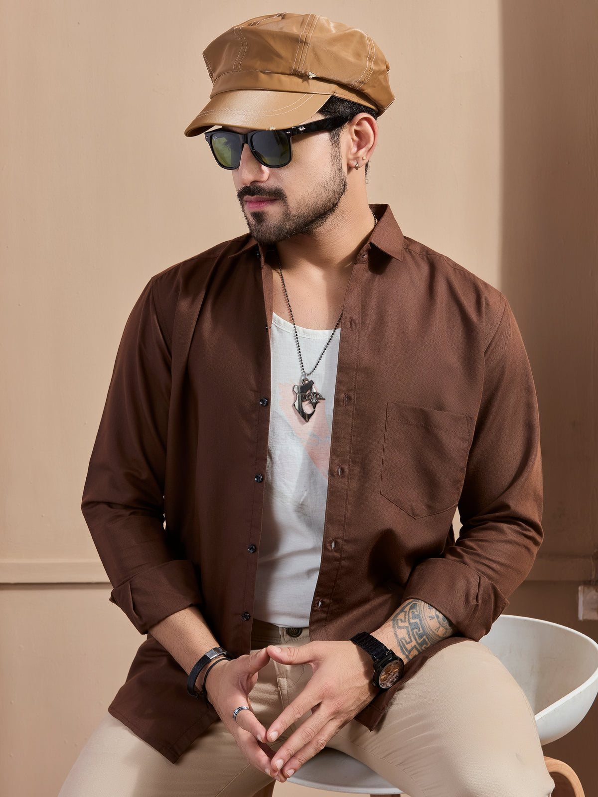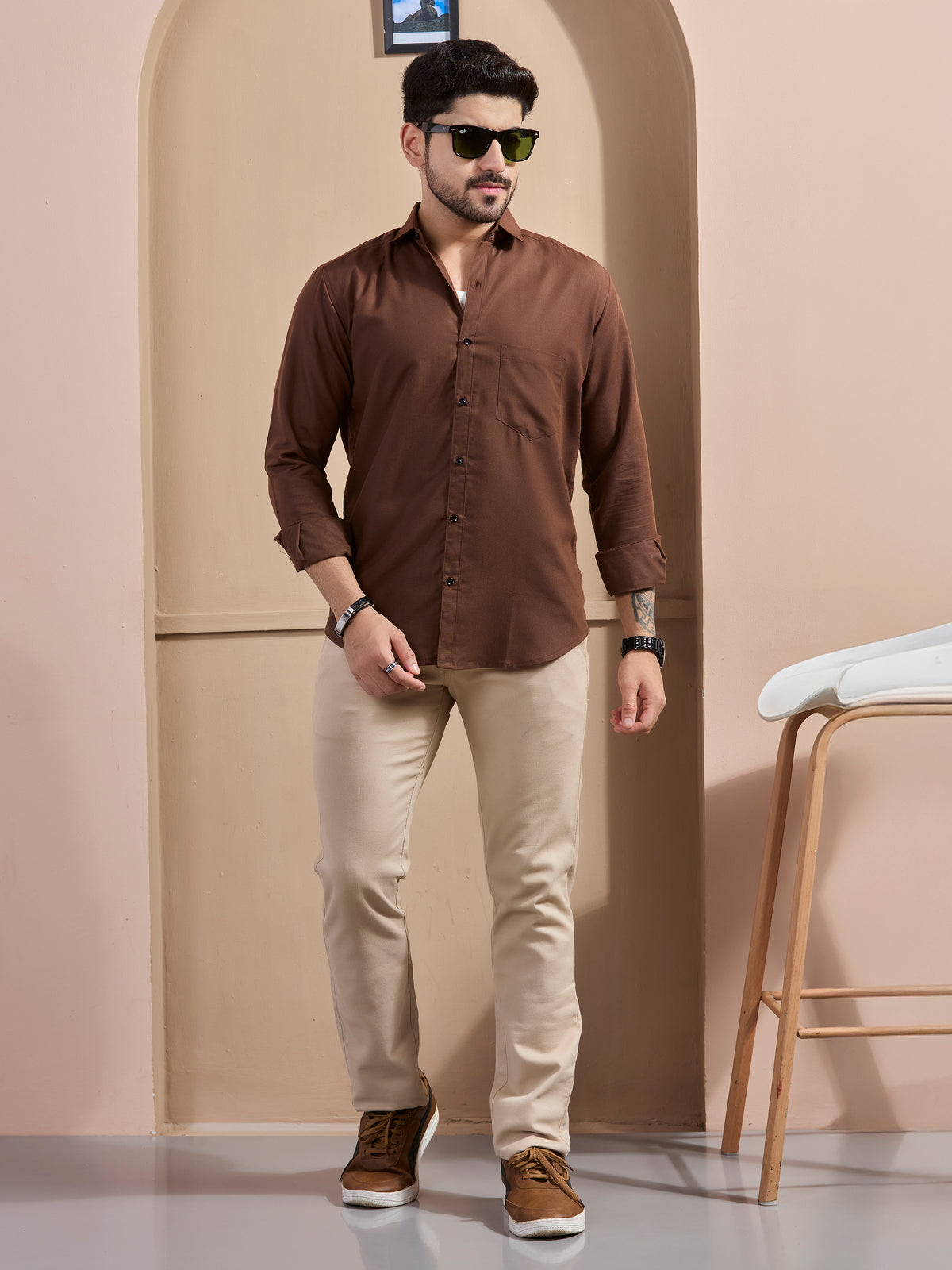 Coffee Linen-Blend Executive Shirt