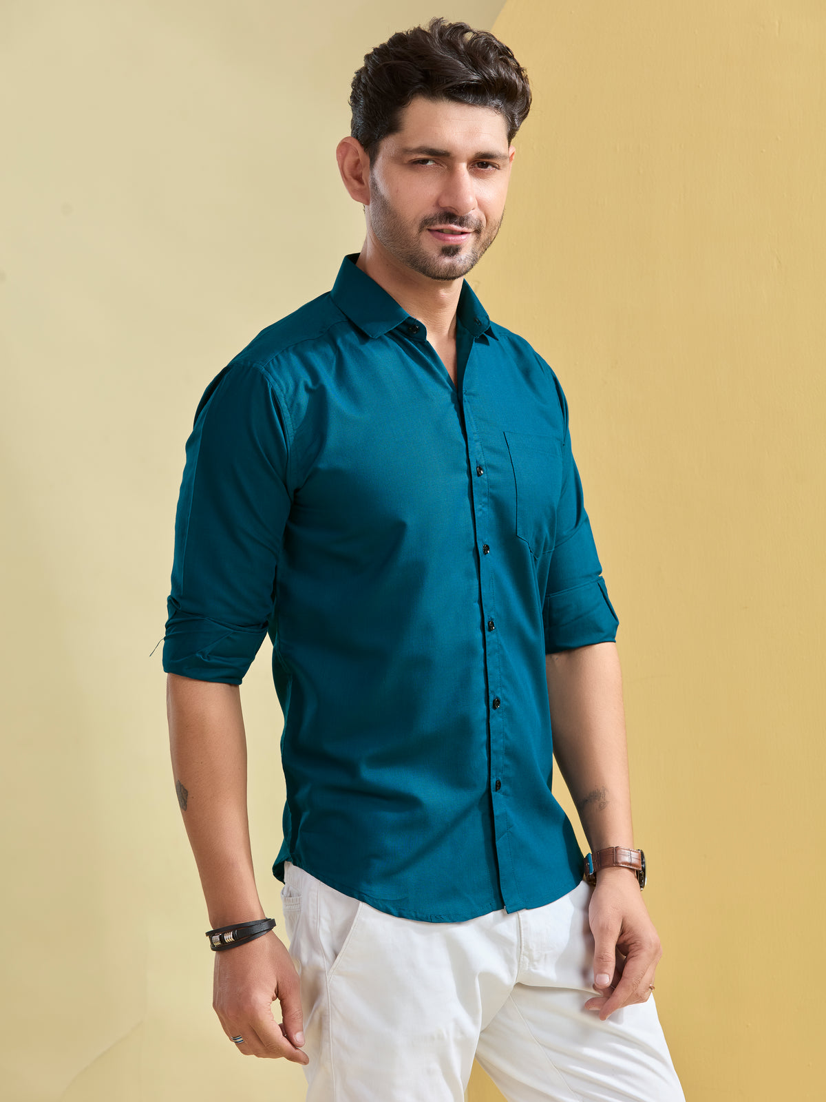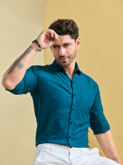 Bold and striking, the Peacock Blue Twill Shirt is designed for men who love standout style. Its durable twill fabric keeps you comfortable while looking crisp. Ideal for weddings, parties, or formal dinners. Pair with black trousers and polished shoes for maximum effect.